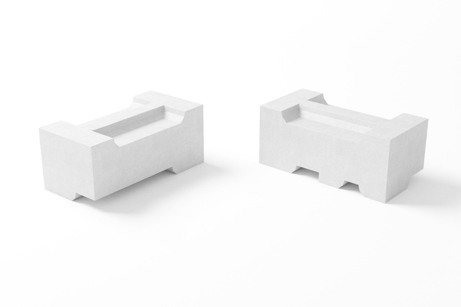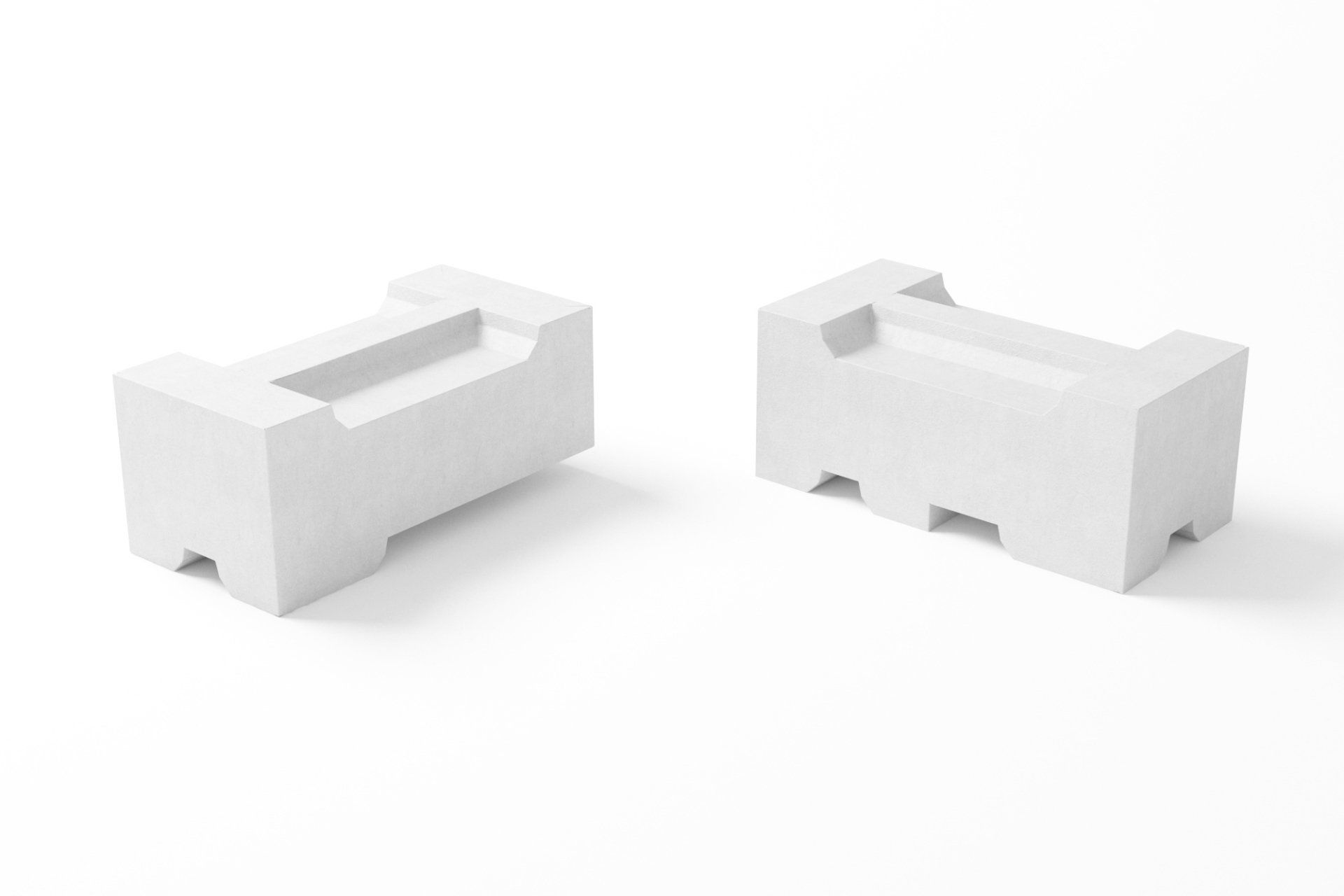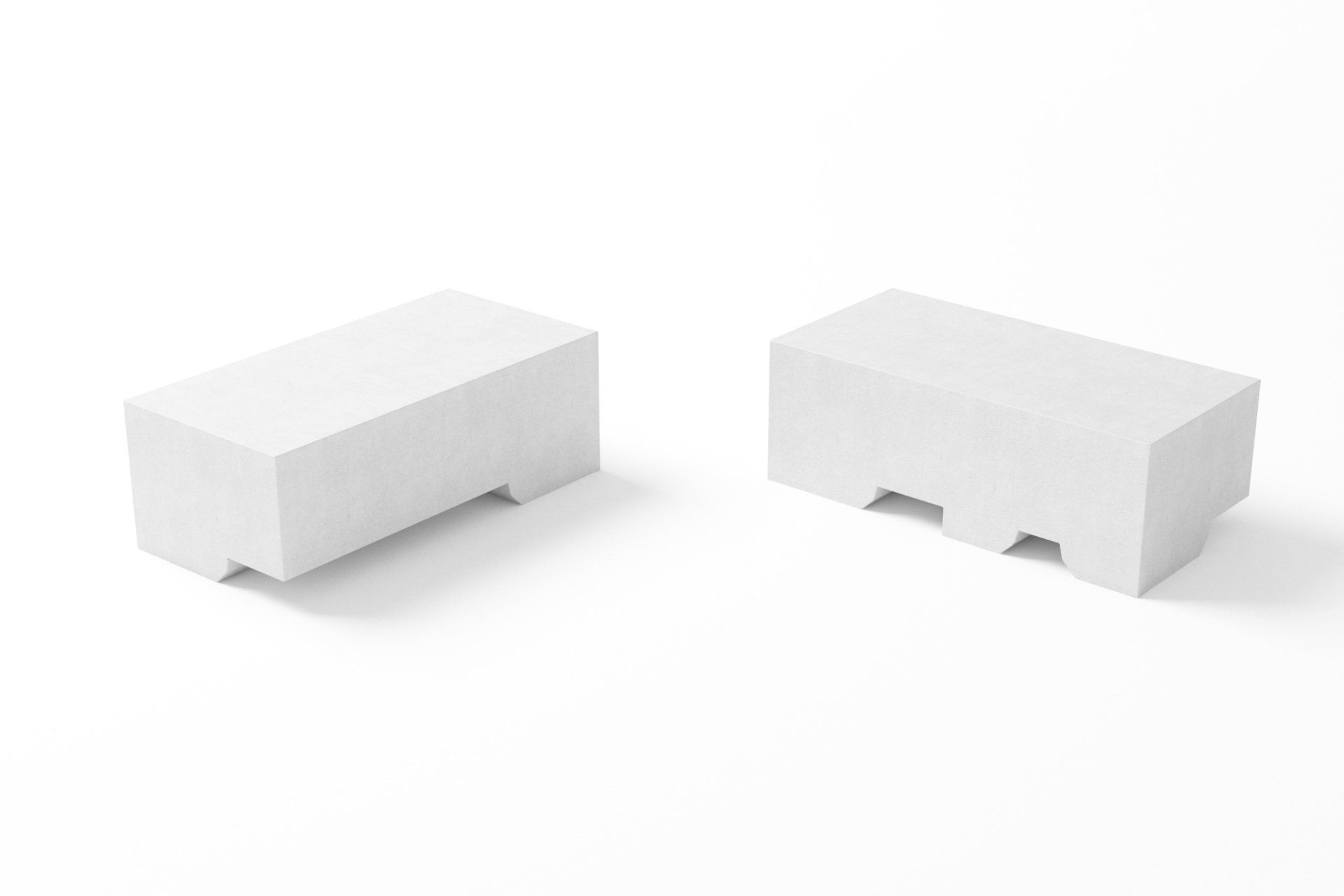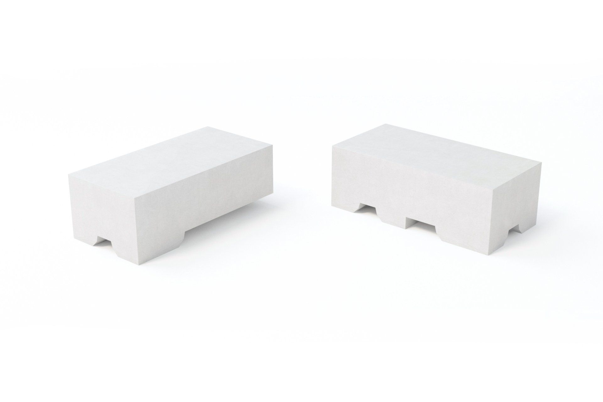 Ein weiteres kleineres Element aus Perlit (in Höhe 300 mm), mit einem guten U-Wert von 0,198 W/m² K. Die Halbelemente gewähren gute Bindung in die horizontalen Schicht, ohne dass die Bausteine zugeschnitten werden müssen.