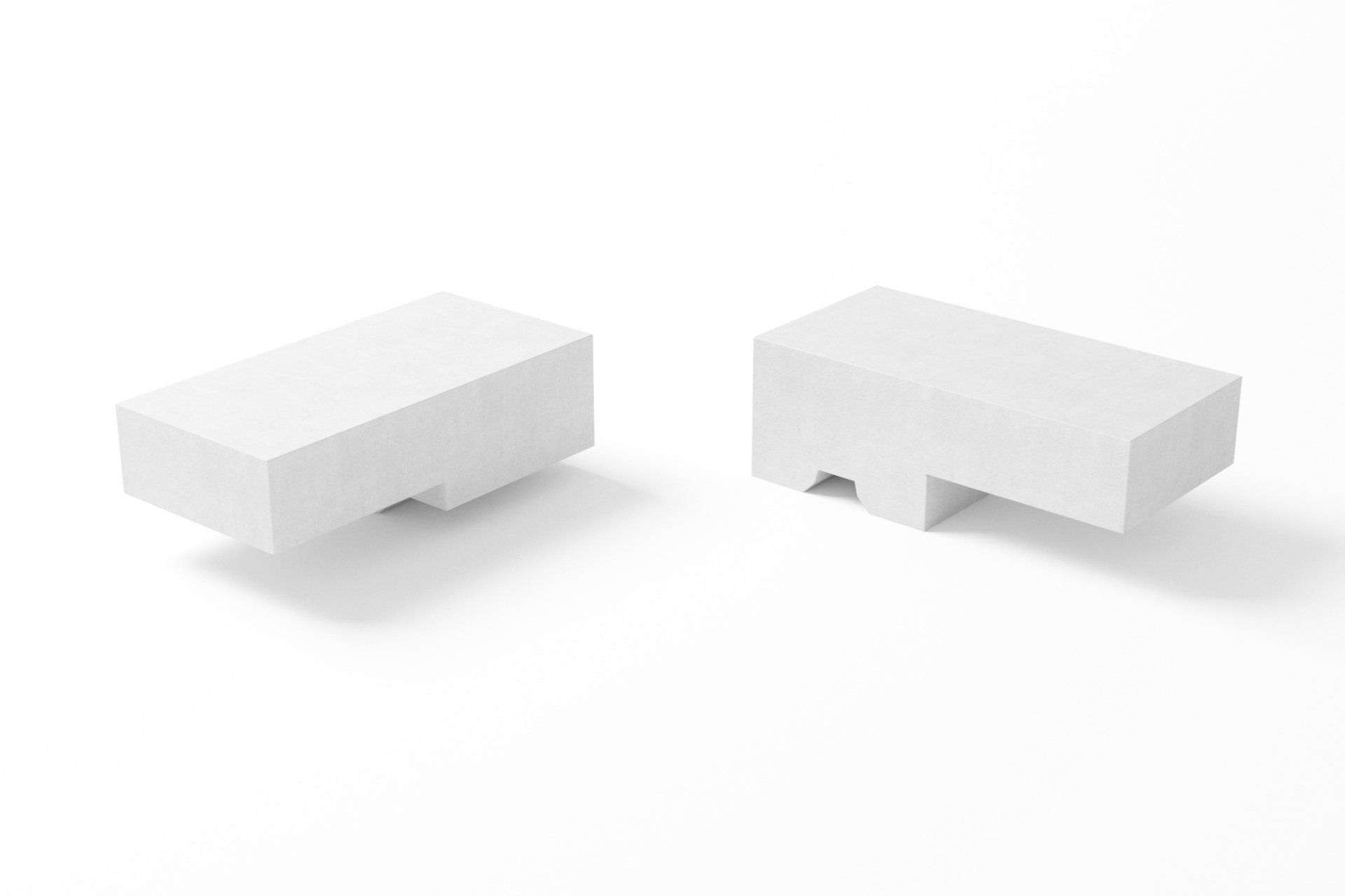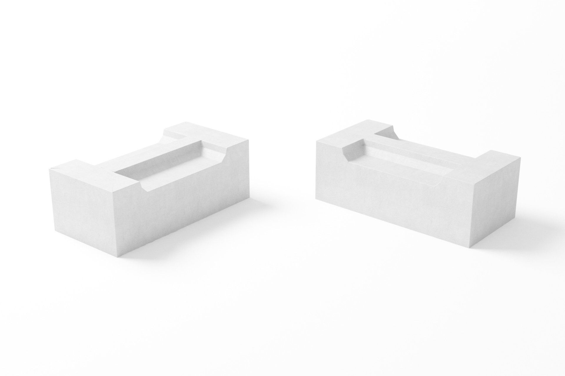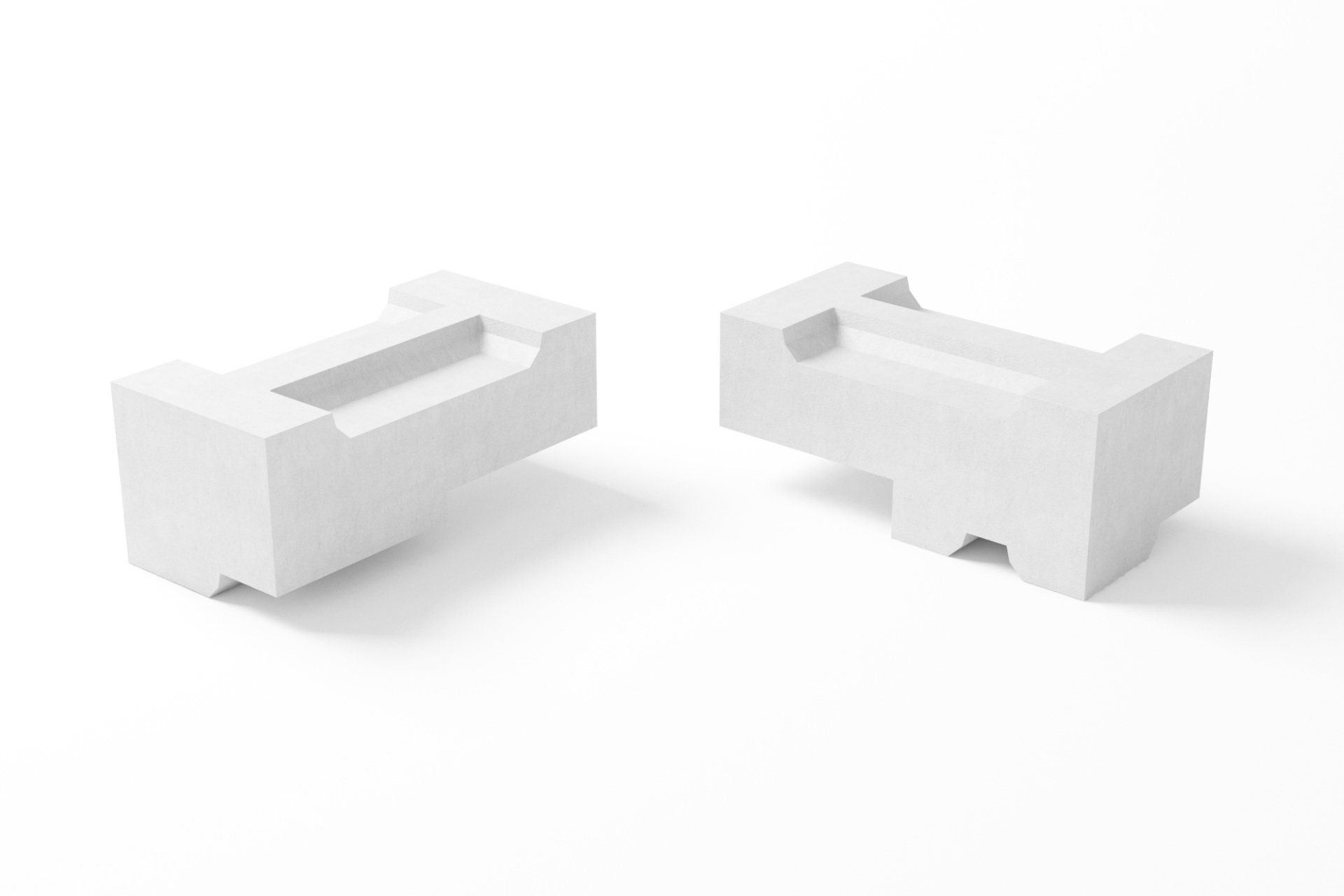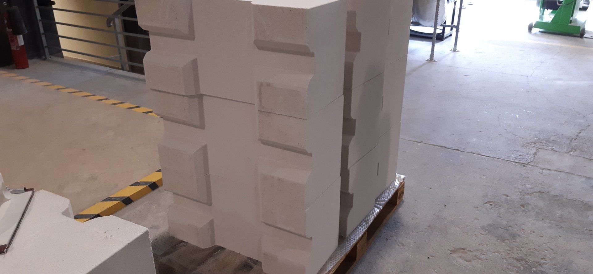 Ein weiteres kleineres Element aus Perlit (in Höhe 300 mm), mit einem guten U-Wert von 0,198 W/m² K. Die Halbelemente gewähren gute Bindung in die horizontalen Schicht, ohne dass die Bausteine zugeschnitten werden müssen.