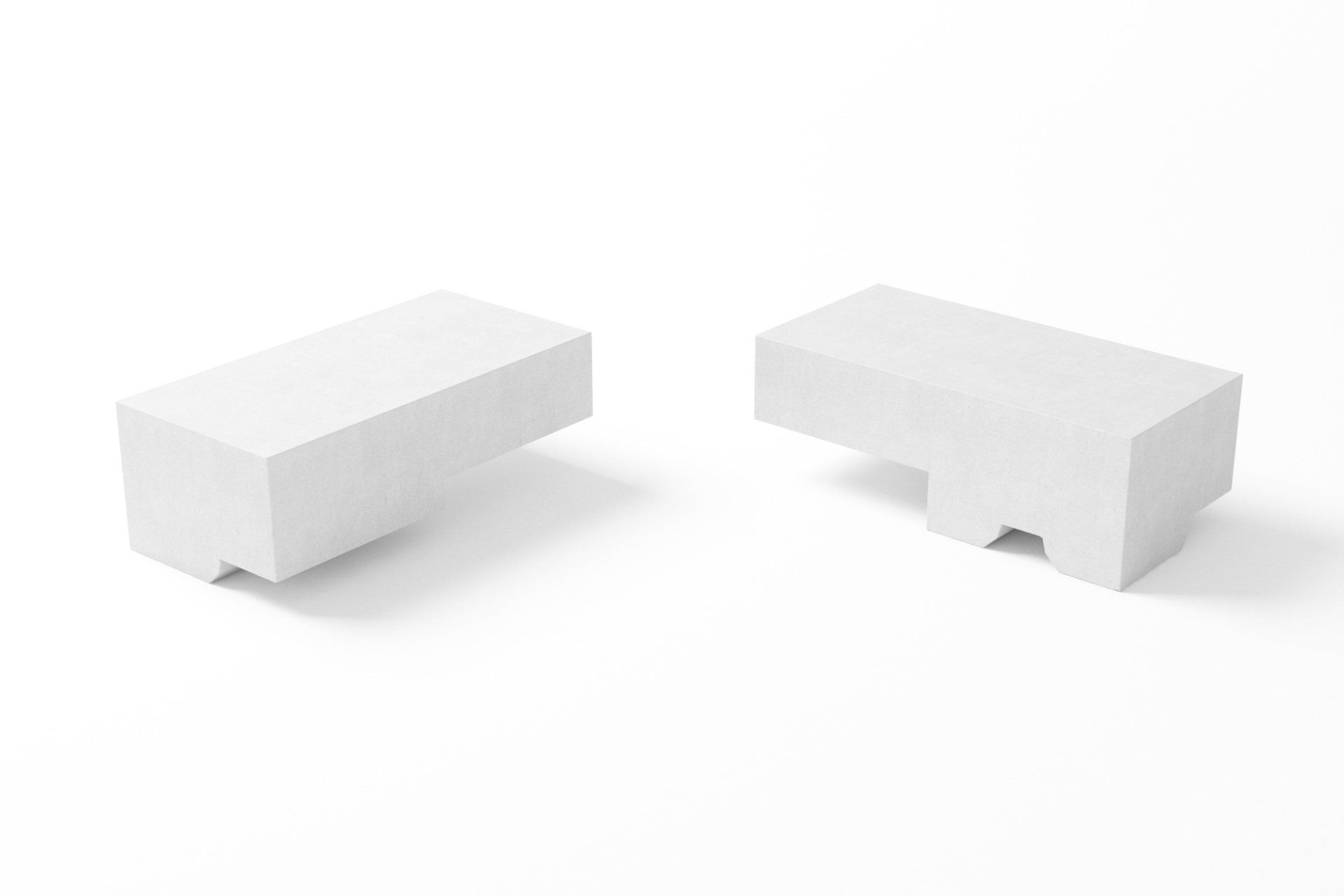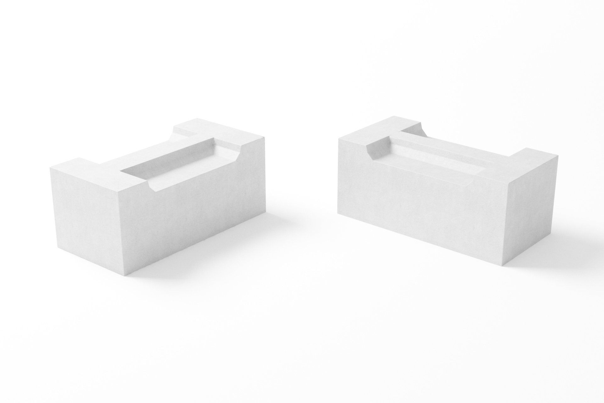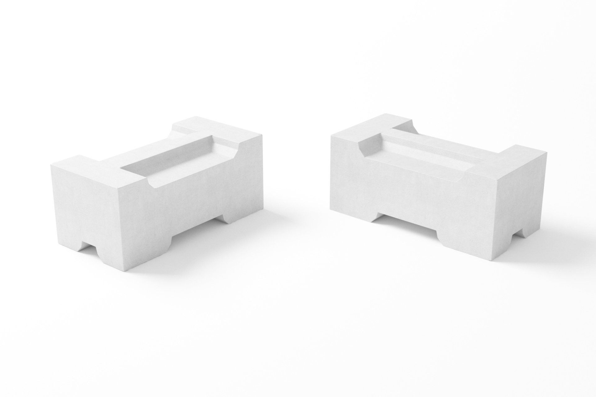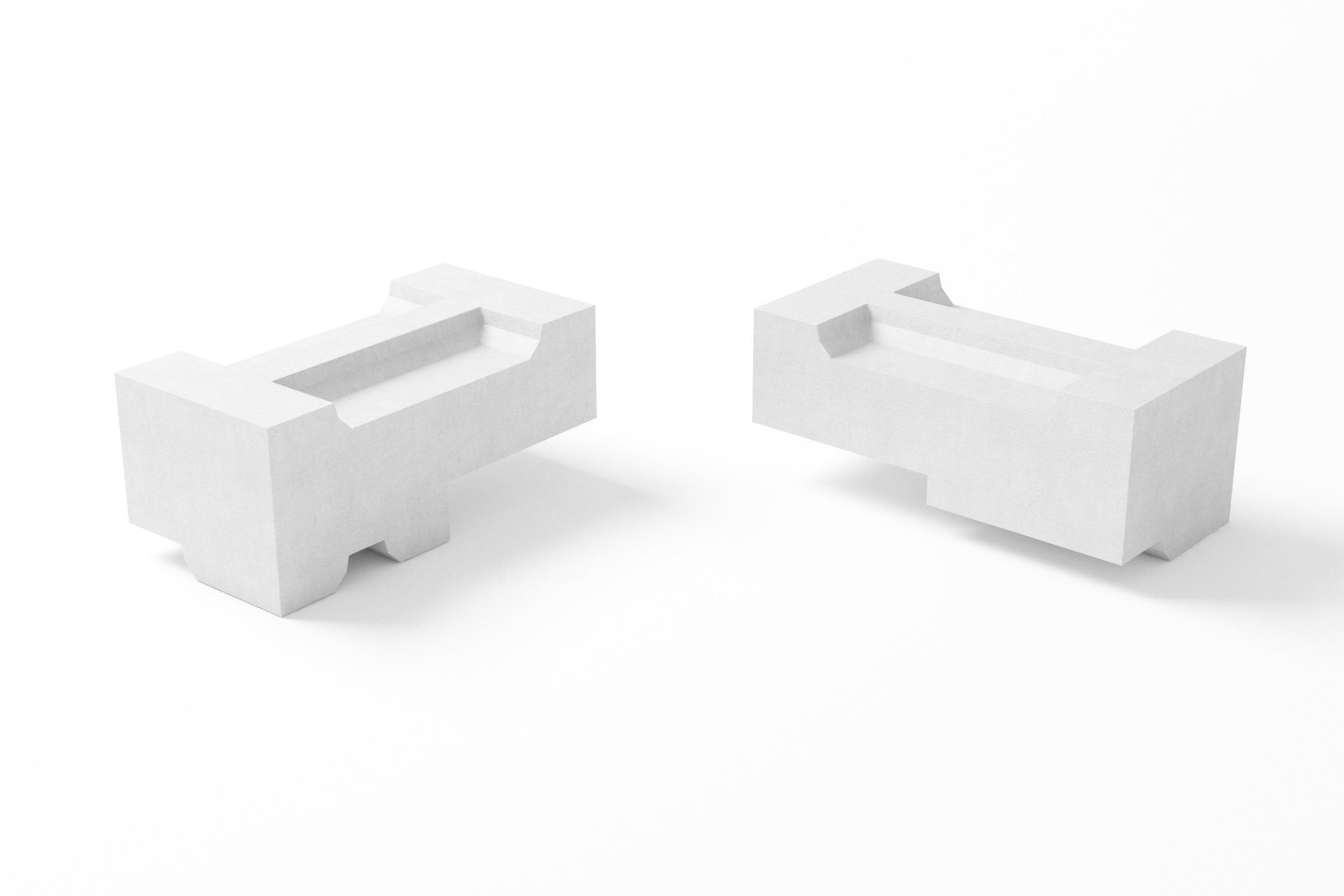Ein weiteres kleineres Element aus Perlit (in Höhe 300 mm), mit einem guten U-Wert von 0,198 W/m² K. Die Halbelemente gewähren gute Bindung in die horizontalen Schicht, ohne dass die Bausteine zugeschnitten werden müssen.